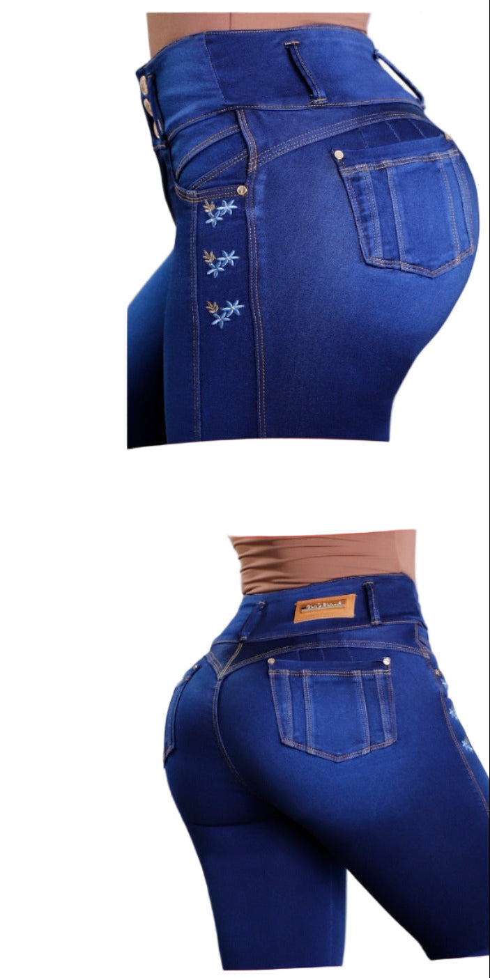 100% COLOMBIAN JEANS, High waist to define it more, its internal design is heart-shaped giving the round shape and enhancing/giving it a lift with natural volume.