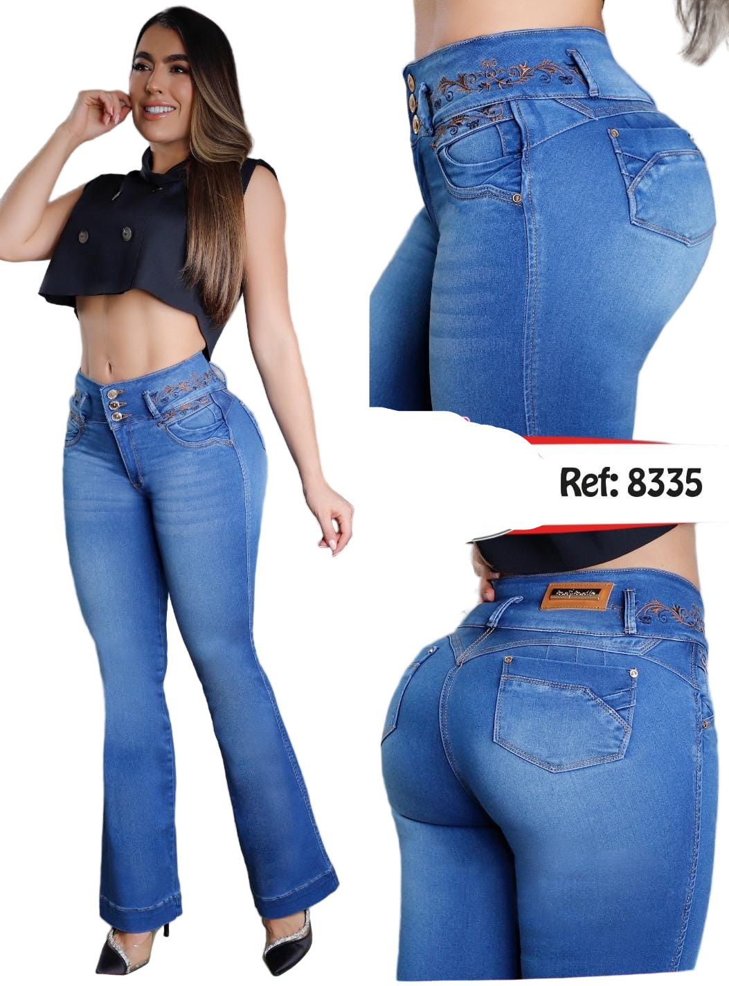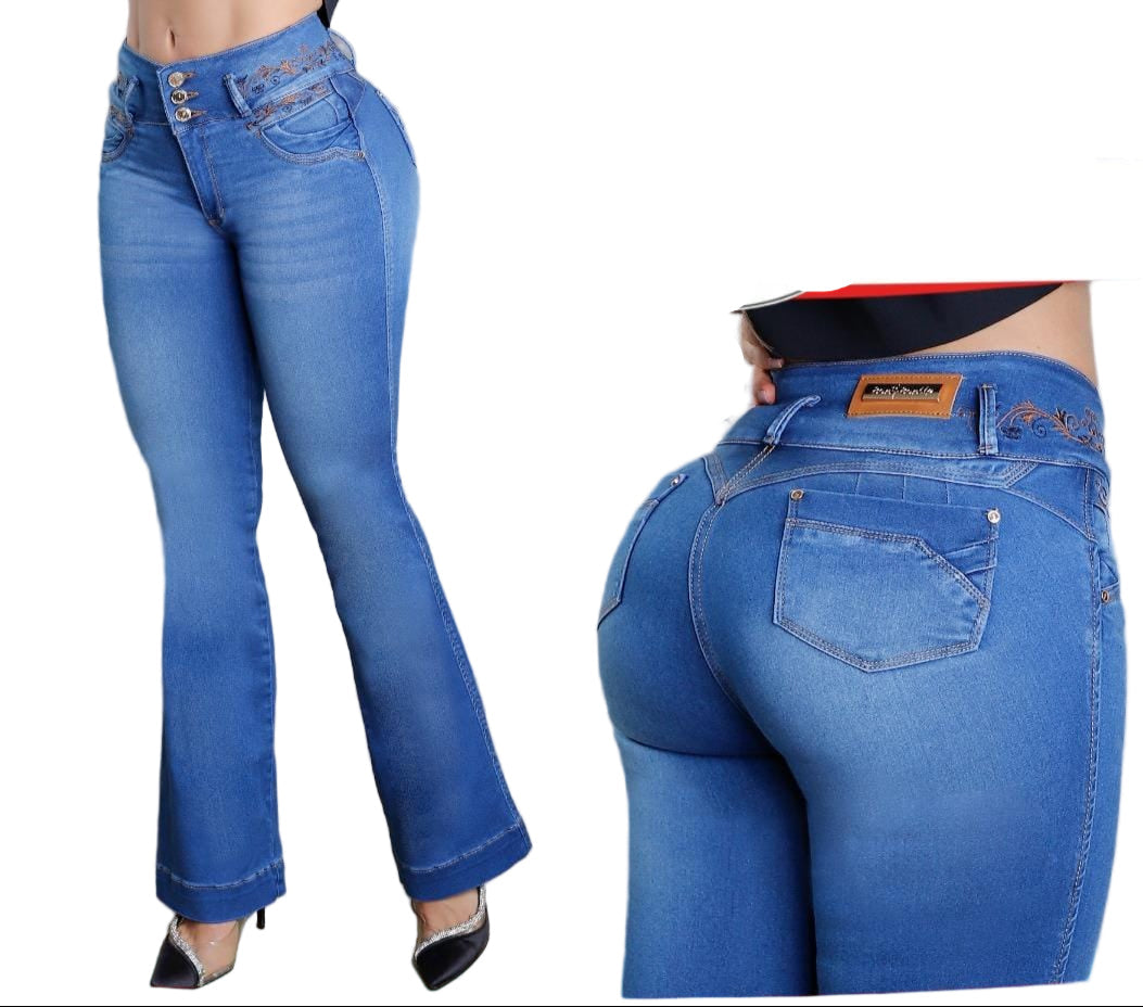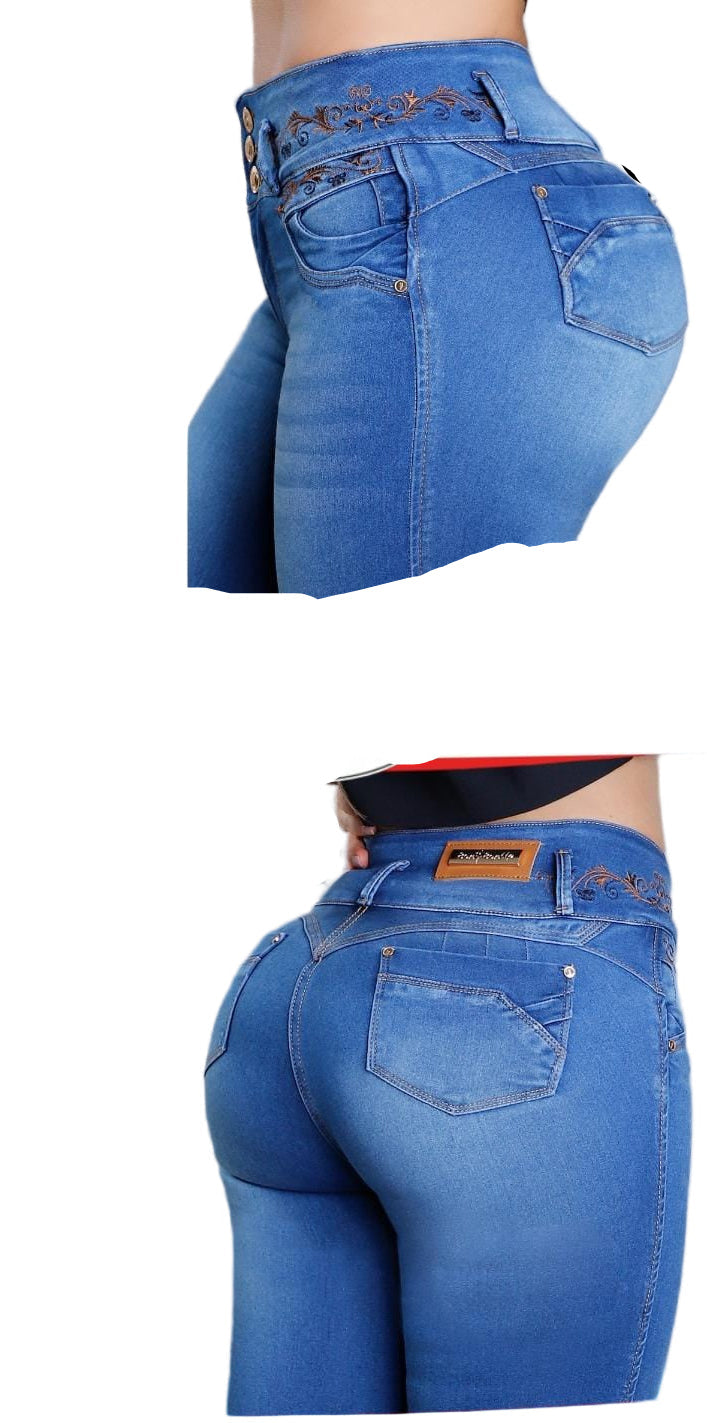 100% COLOMBIAN JEANS, High waist to define it more, its internal design is heart-shaped giving the round shape and enhancing/giving it a lift with natural volume.