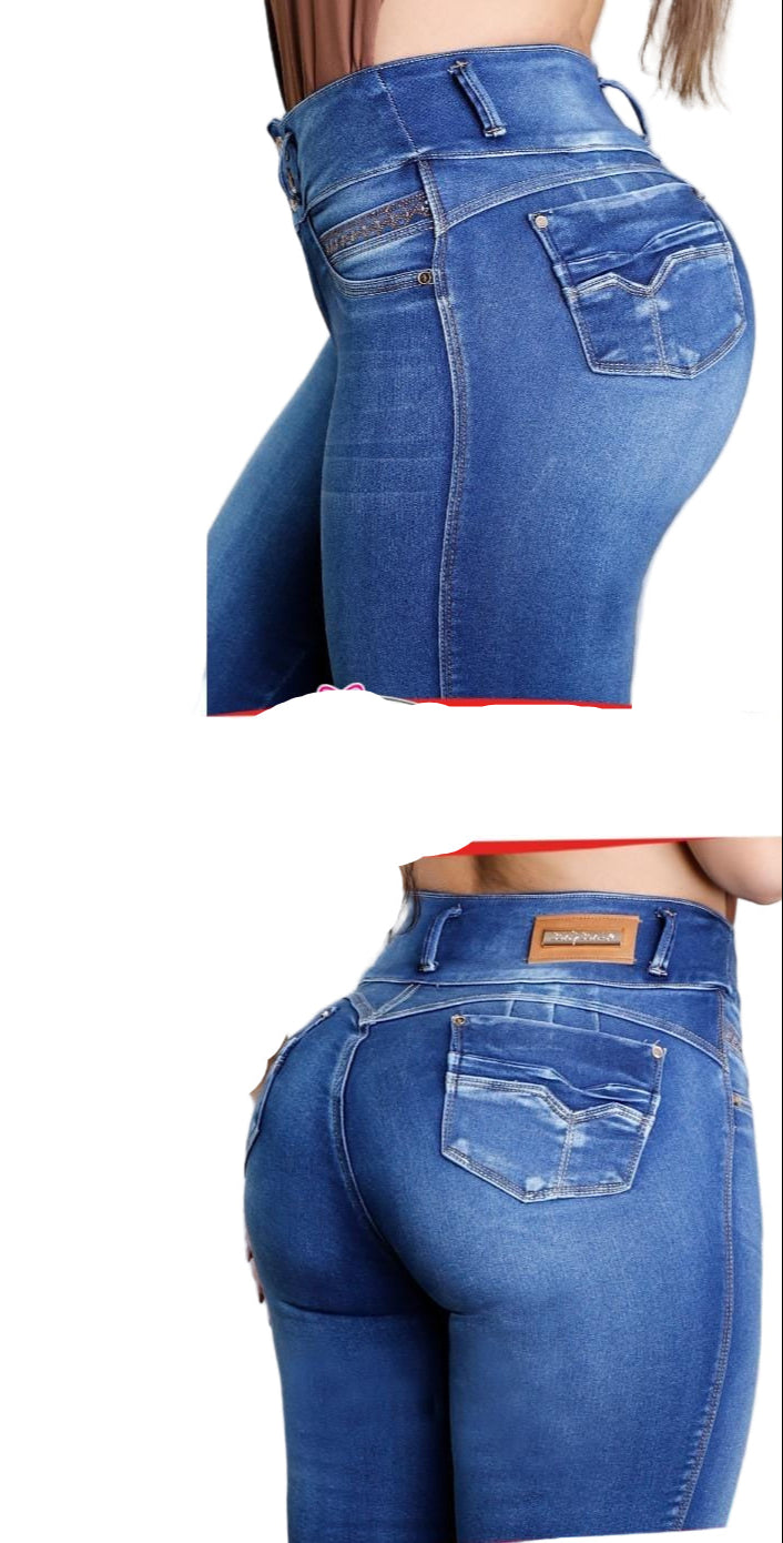 100% COLOMBIAN JEANS, High waist to define it more, its internal design is heart-shaped giving the round shape and enhancing/giving it a lift with natural volume.