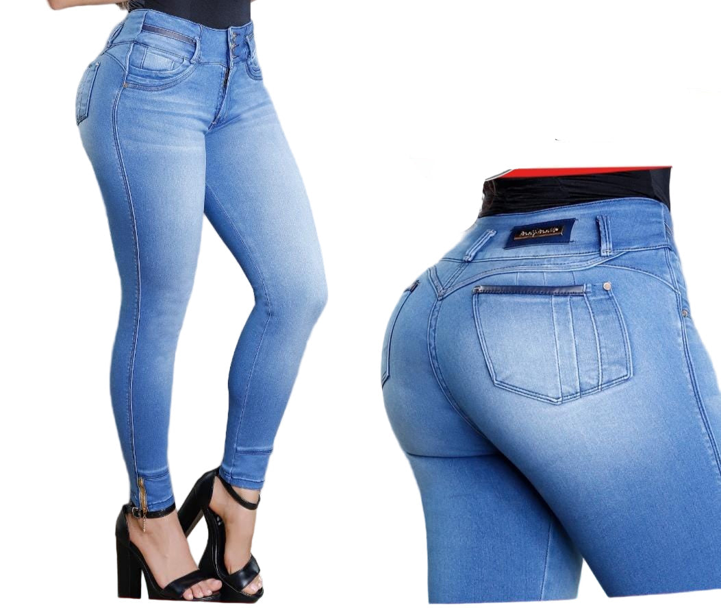100% COLOMBIAN JEANS, High waist to define it more, its internal design is heart-shaped giving the round shape and enhancing/giving it a lift with natural volume.