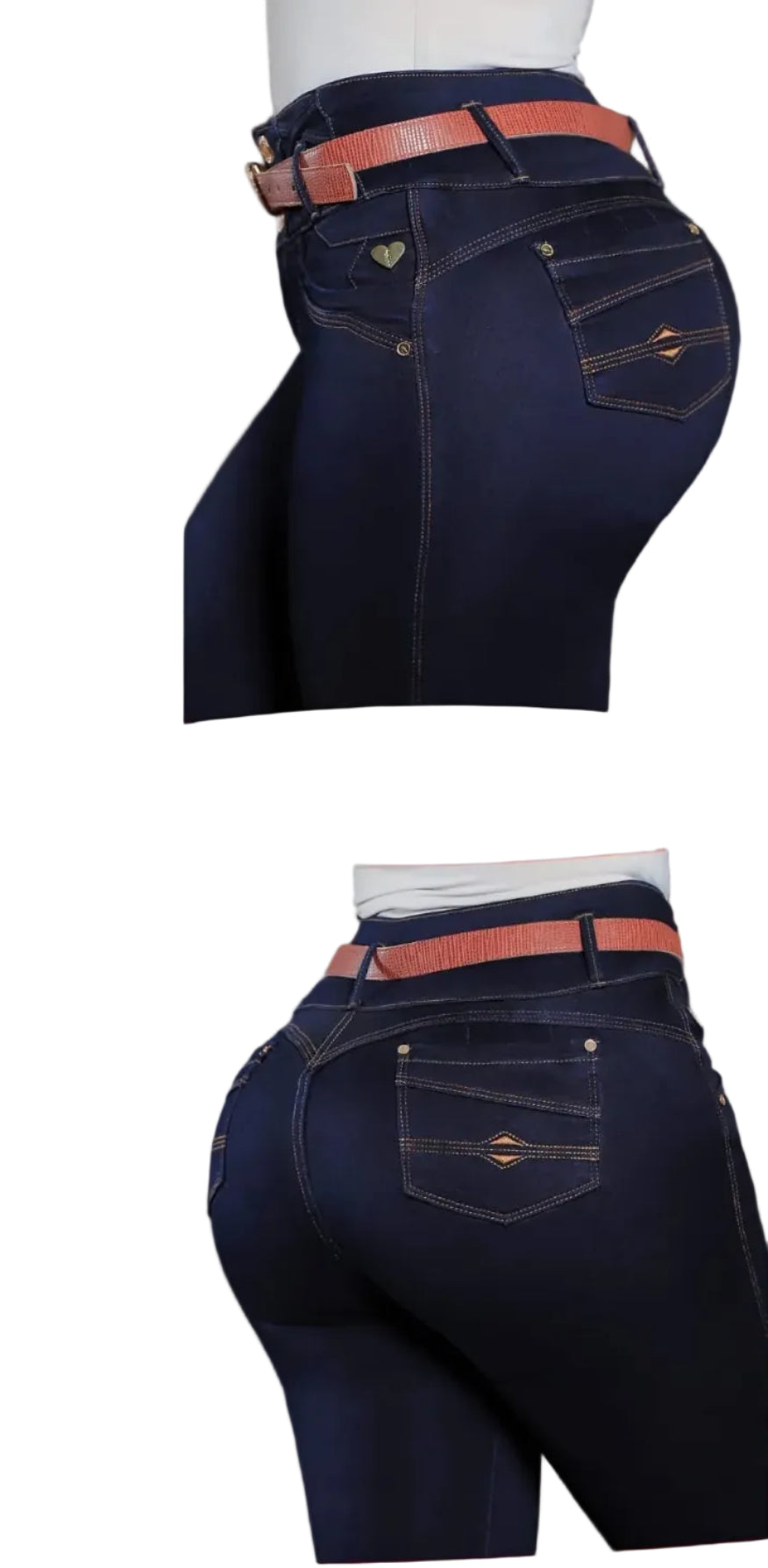 100% COLOMBIAN JEANS, High waist to define it more, its internal design is heart-shaped giving the round shape and enhancing/giving it a lift with natural volume.
