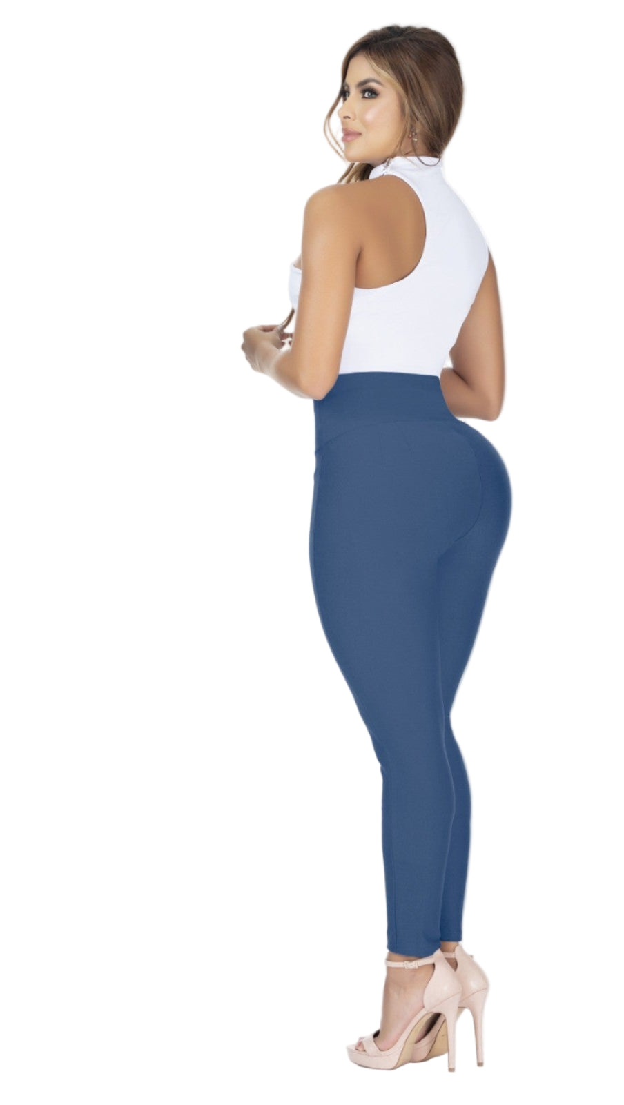 These high-waist skinny leggings offer a sleek cut with discreet seams for a smooth silhouette. They provide gentle shaping without the discomfort of sponges, pads, or metal stays. The zipper ensures a secure fit, while the push-up effect enhances your natural curves. Crafted entirely in Colombia, these leggings combine expert design with quality materials for both style and comfort.